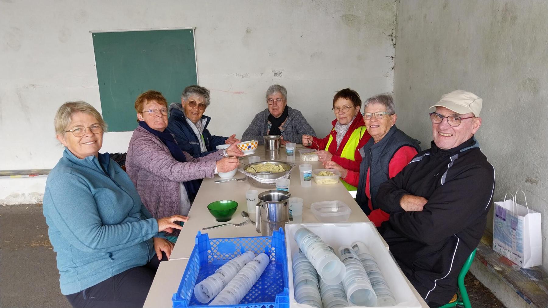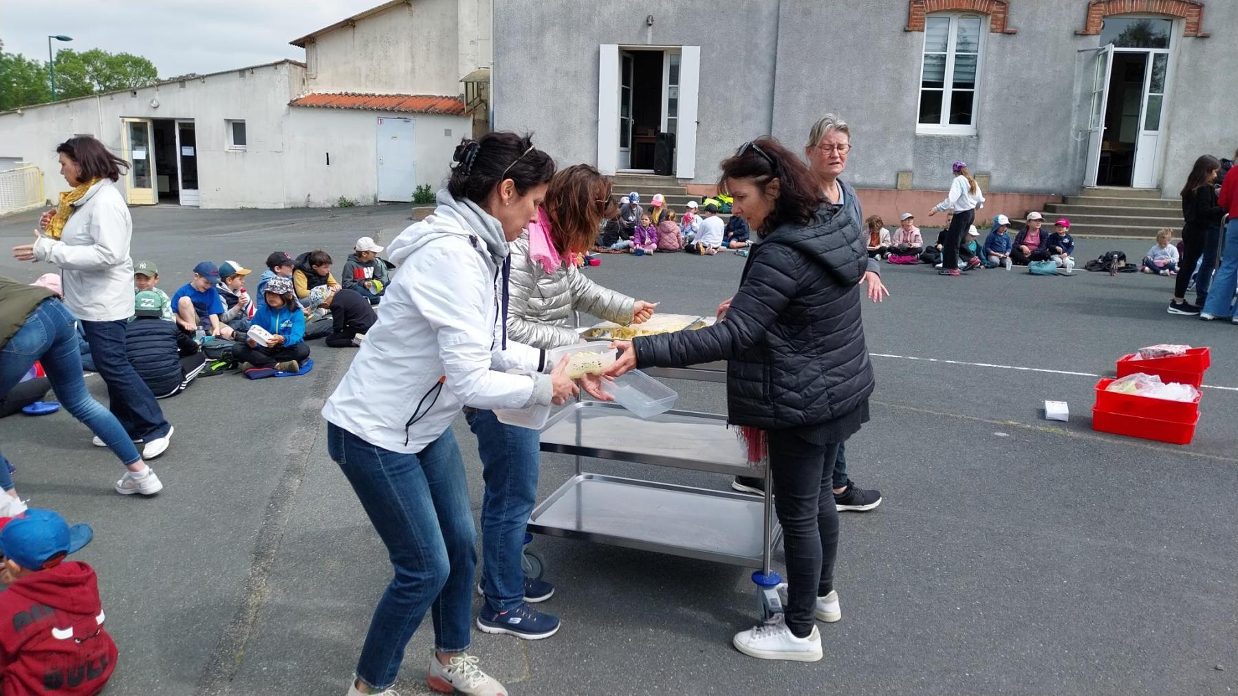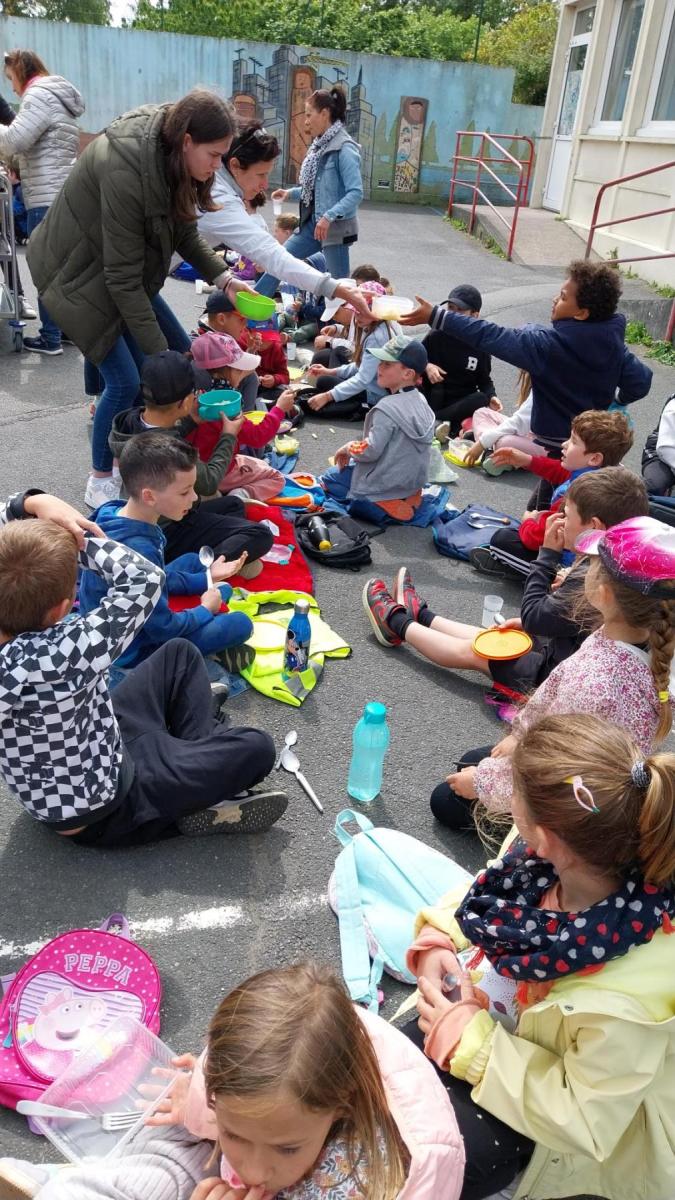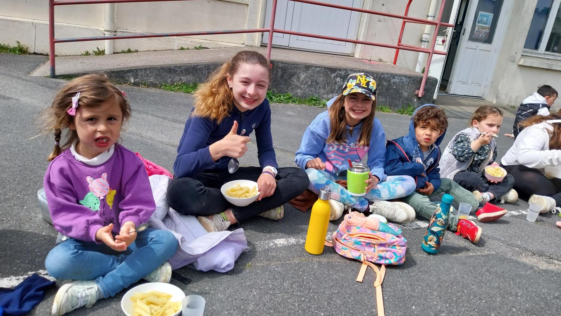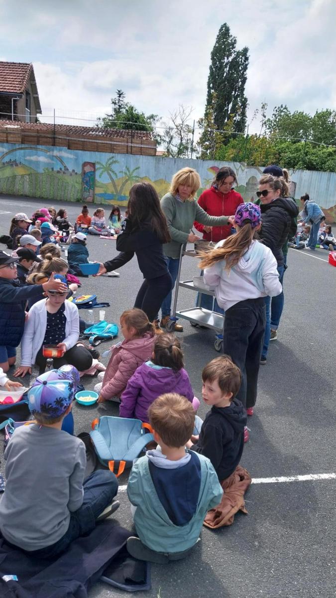 Suite à la marche solidaire effectuée avec les membres du club des aînés et accompagnés de leurs parents ou grands-parents, les élèves de l’école, de la PS jusqu’au CM2, se sont retrouvés sur la cour pour partager un bol de pâtes, symbolisant l’entrée dans la période de Carême.