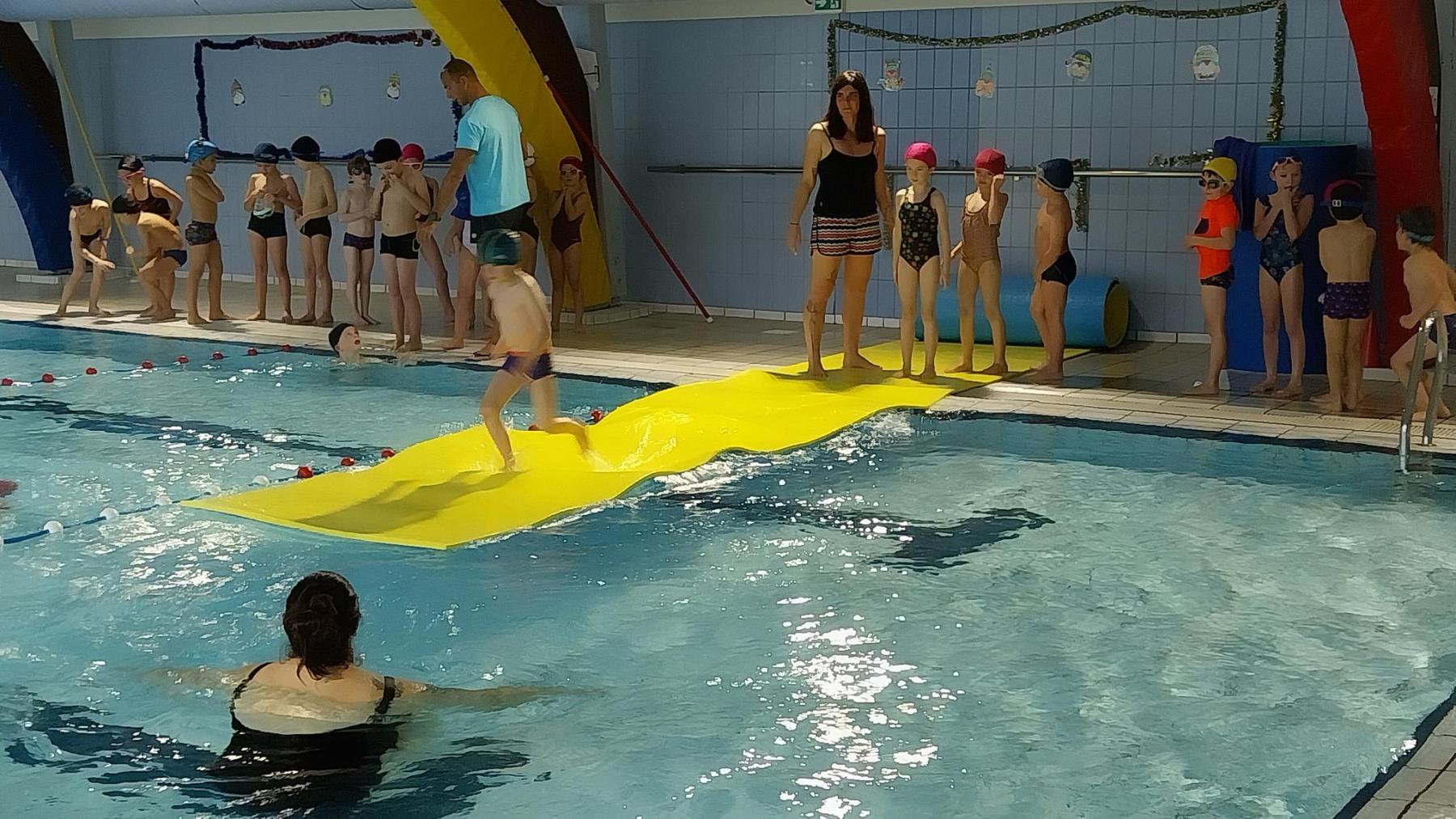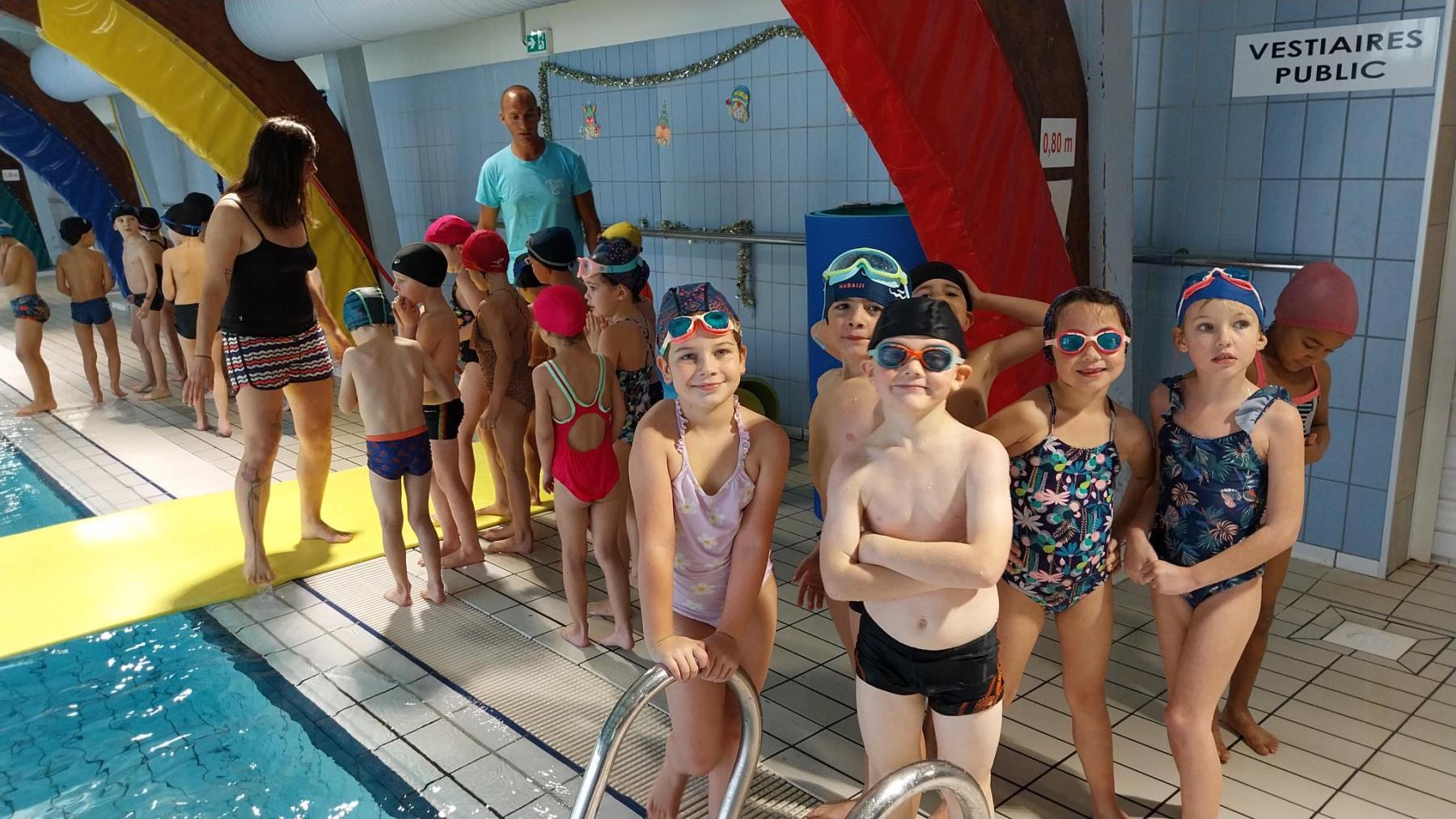 Tous les lundis et jeudis, pendant 10 séances, les élèves se familiarisent avec le milieu aquatique et barbotent déjà très bien !